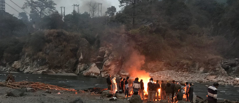 लकडियाँ जस तस नीचे पहुंचाई गईं. पांच-छः चिताएं जल रही थीं. कोई धधकी हुई, कोई धुआँती हुई, कोई ख़त्म होने को तैयार. बहुत सलीके से लगाई गयी एक चिता से लपटें उठना शुरू हो गयी थीं. बगल में एसएसबी के कई जवान और अफसर जैसा दिखने का जतन कर रहे कुछ मनहूस प्राणी – जैसे दफ्तर से छुट्टी होने का आजिजी से इंतज़ार कर रहे हों.